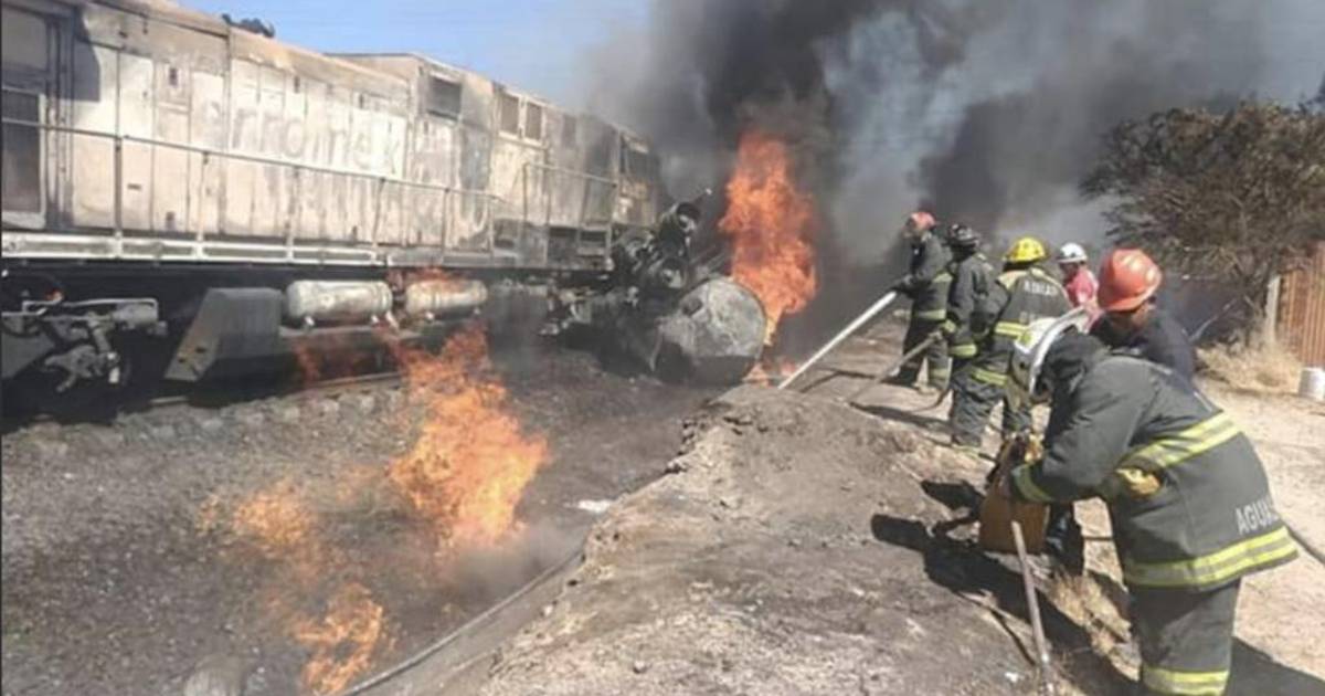 La mañana de este lunes se registró un choque entre un tren y una pipa cargada con combustible, en la comunidad de Coyotes, en el estado de Aguascalientes.