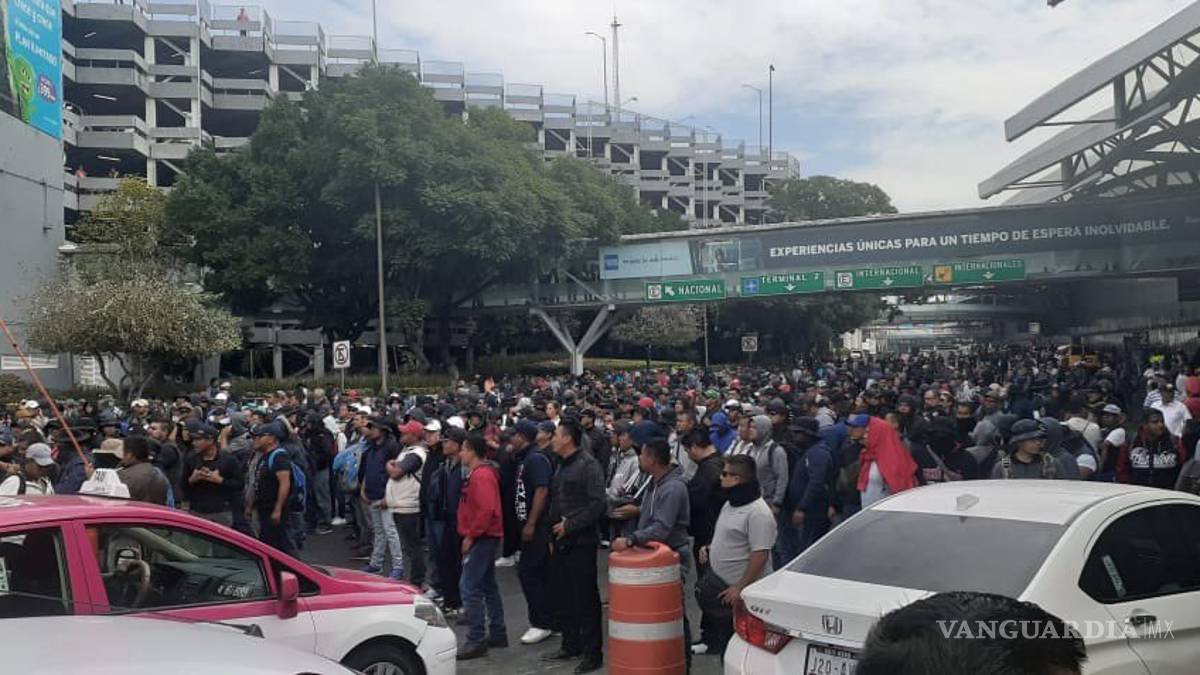 El bloqueo se desarrolla en la Terminal 1, mientras en la zona de la Terminal 2 se lleva a cabo el arribo del expresidente de Bolivia, Evo Morales, quien recibirá asilo político en México.