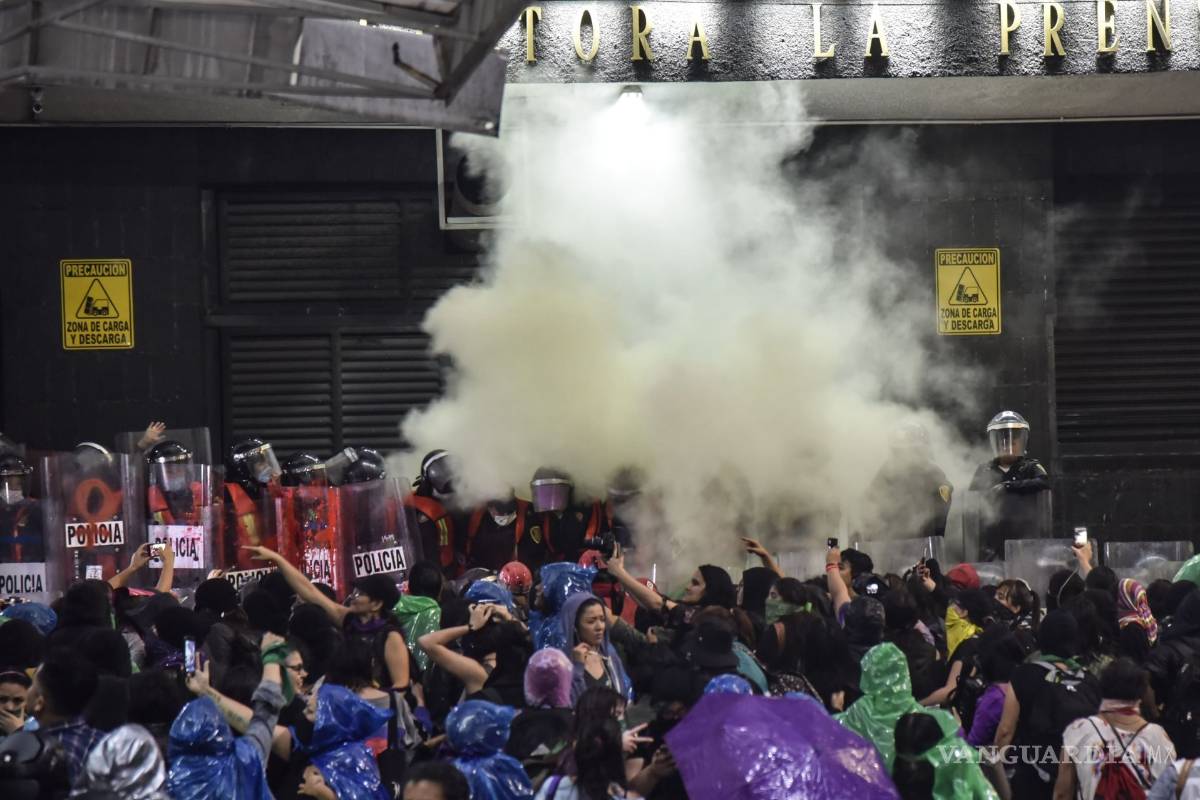 Y es que la policía capitalina usó un recurso que no se había visto en la serie de protestas feministas de los últimos meses: disparar extintores directamente a la cara de las manifestantes, de los que salía un humo verde que provocaba ardor en ojos, garganta y ataques de tos. Eso a pesar de que hubo menos destrozos que en marchas anteriores.