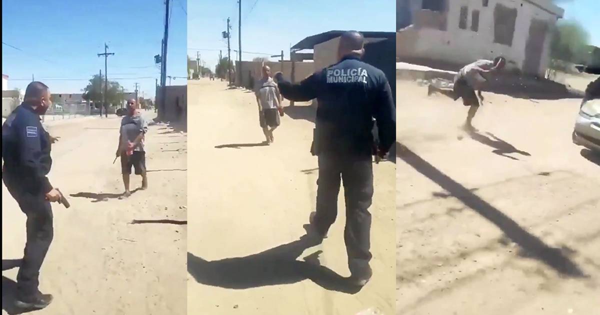 Un policía municipal repelió a tiros a un hombre, quien era acusado de violencia doméstica, cuando lo atacó con un arma blanca en San Luis Río Colorado, Sonora.