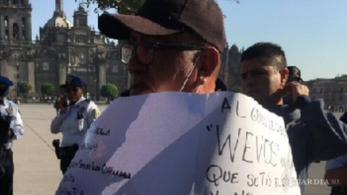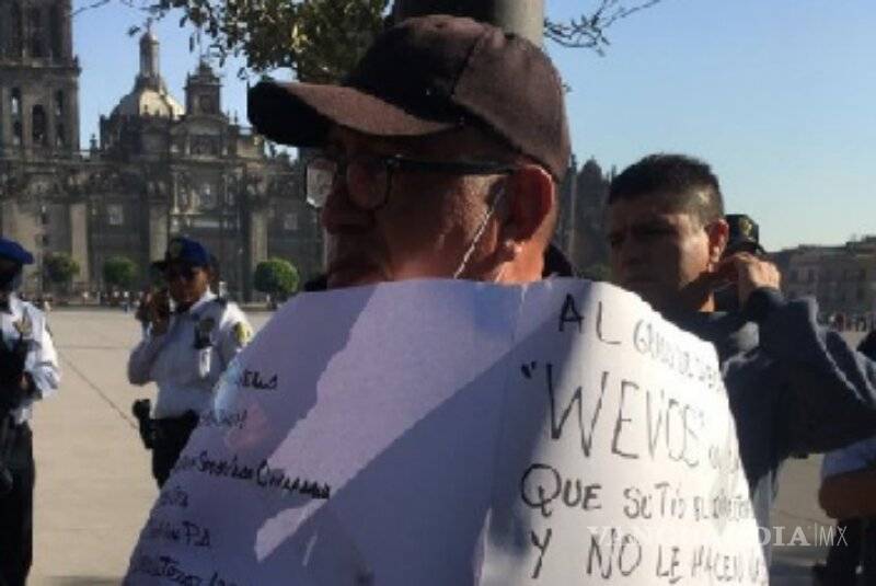 El elemento de seguridad del Metro se amarró en el Zócalo capitalino, en forma de protesta por aproximadamente media hora