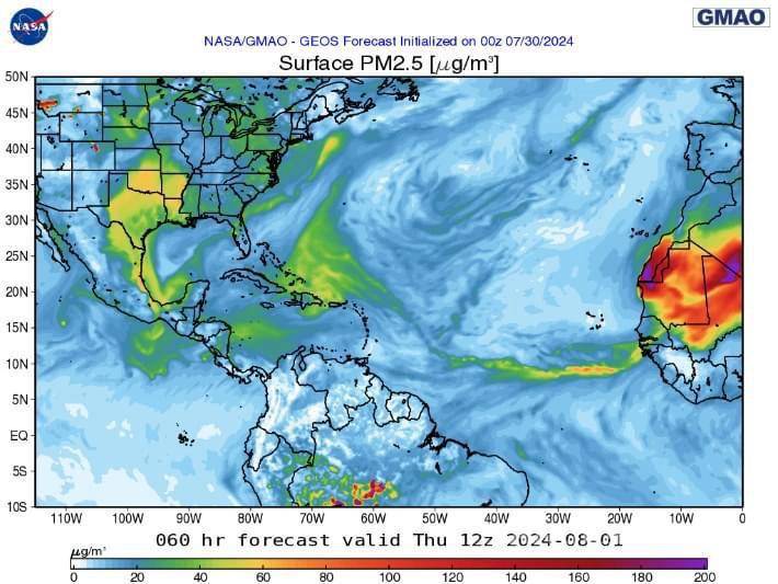 Estos vientos alisios intensos soplan hacia el oeste en el Atlántico Norte y alcanzan su máxima intensidad entre mediados de junio y mediados de agosto. La masa de aire se desplaza sobre el Atlántico Norte Tropical, afectando el Caribe, América Central, México e incluso el sur de Estados Unidos.