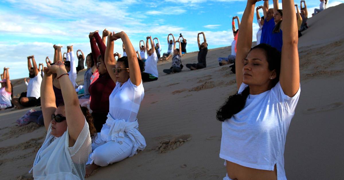 El “Encuentro de yoga en las dunas, unidos desde la distancia”, que se realiza anualmente desde 2015, se canceló el año pasado por la pandemia del coronavirus, pero fue retomado ayer.