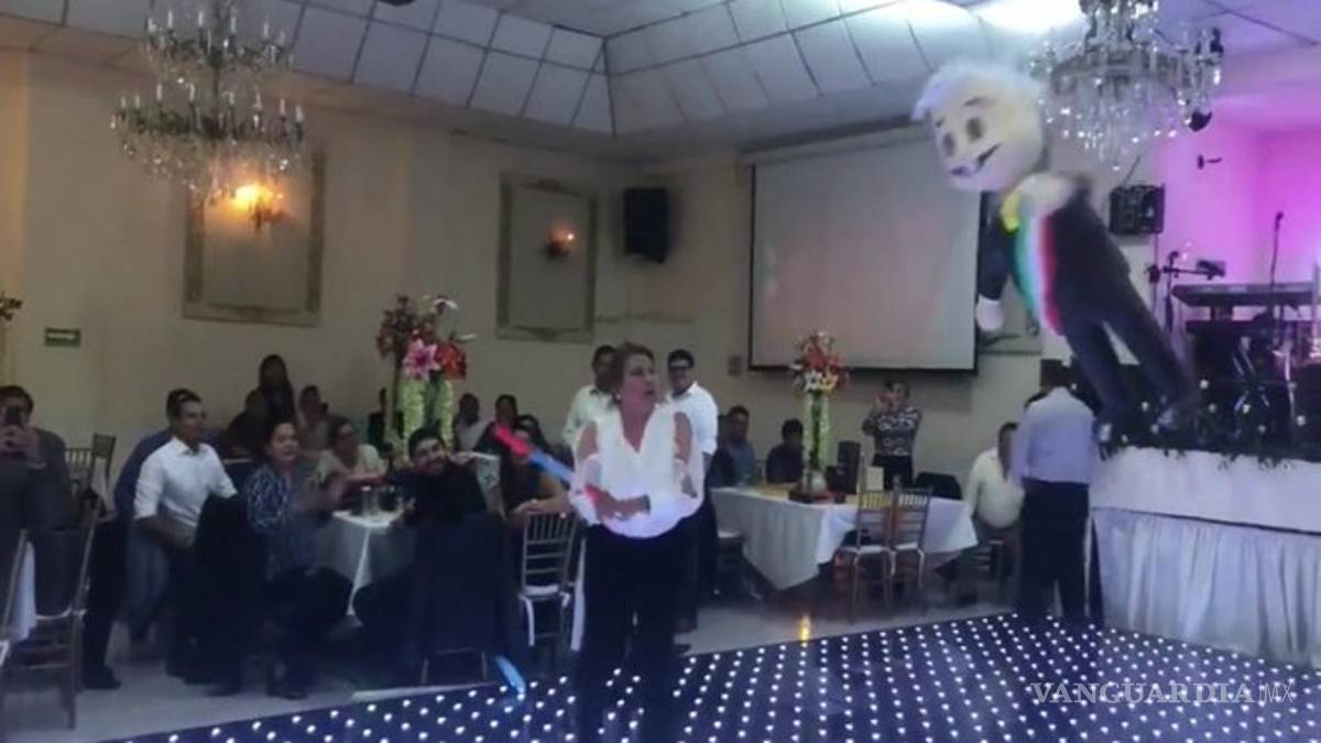 En un video que circula en redes sociales de apenas 24 segundos, se aprecia a la diputada del sol azteca, Guadalupe Almaguer, pegándole a la piñata del titular del Ejecutivo con todo y Banda Presidencial.
