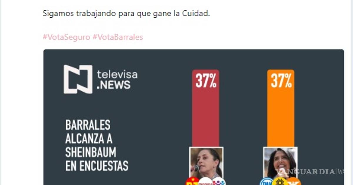 Este jueves la abanderada del Frente publicó en sus redes sociales otra encuesta, supuestamente hecha por Televisa, donde se mostraba un empate técnico entre ella y su rival morenista. Minutos después, ambas publicaciones fueron eliminadas sin hacer una aclaración.