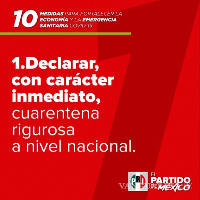 PRI pide cuarentena en todo México, no pagar impuestos y que AMLO complemente sueldos