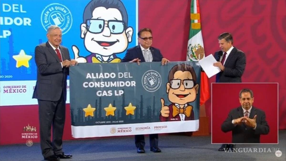El presidente Andrés Manuel López Obrador entregó durante su conferencia matutina, reconocimientos a empresarios que distribuyen gasolina en el territorio nacional por ser "Aliados del Consumidor" al respetar los precios de combustibles en las gasolineras distribuidoras a los consumidores.