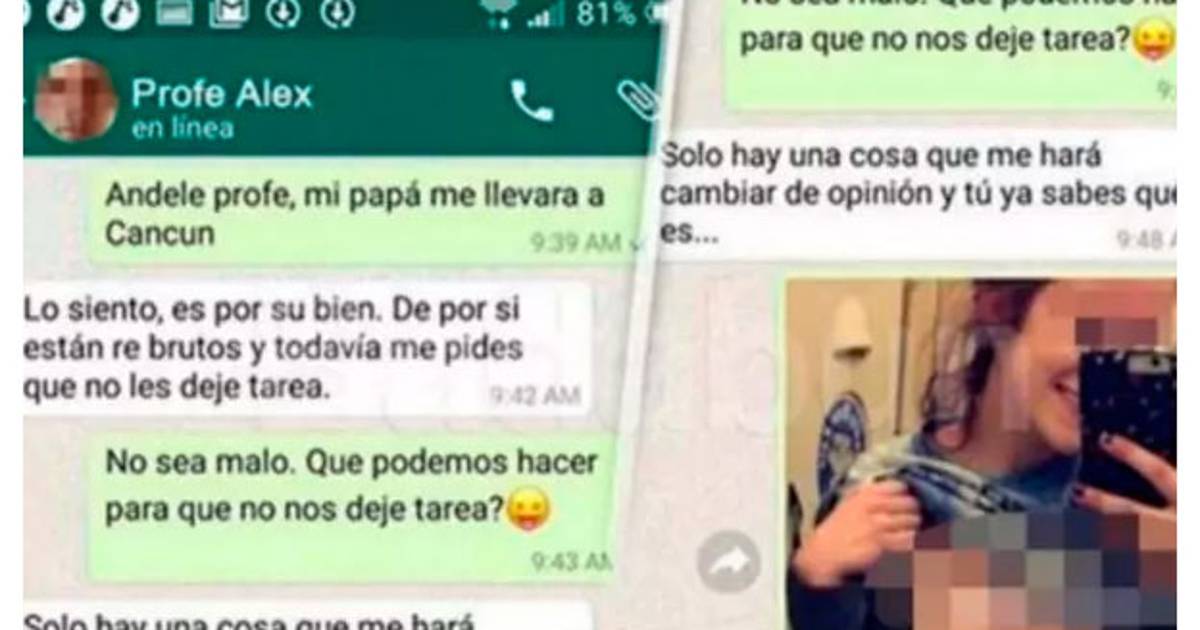 El padre de una joven de 16 años descubrió los 'chats' entre su hija y el profesor en el teléfono celular de la menor, por lo que presentó una denuncia en contra del docente, identificado como solo como "El Profe Alex", quien está prófugo.