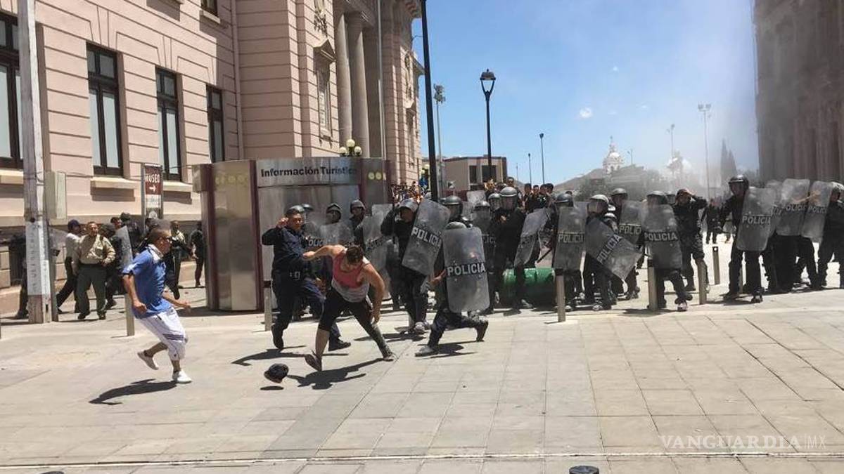 De acuerdo con los reportes, continuó, desde temprana hora 250 personas se aglutinaron en el cruce de las avenidas Aldama y Libertad, luego iniciaron los actos de vandalismo en el recinto histórico, con daños en ventanas, cristales, paredes y puertas.