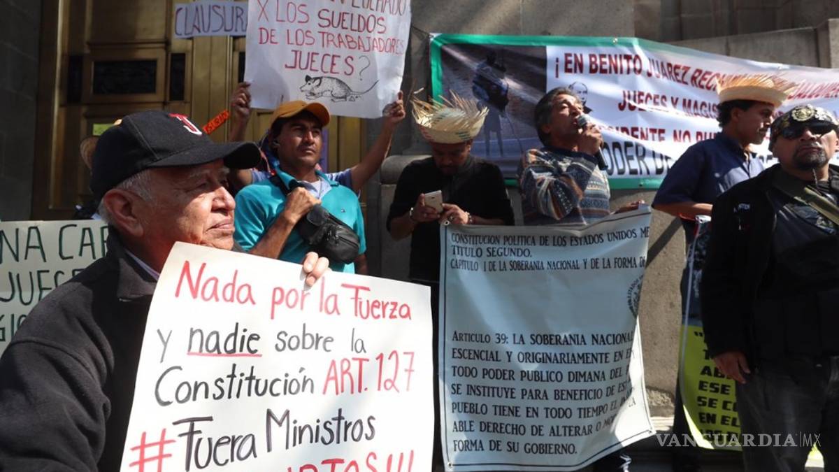Por quinto día consecutivo colectivos ciudadanos exigieron que jueces y ministros recorten sus sueldos conforme a la Ley de Remuneraciones de los Servidores Públicos que ordena que ningún funcionario podrá ganar más que el presidente Andrés Manuel López Obrador, es decir, 108 mil pesos mensuales.