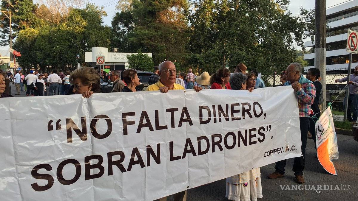 Los jubilados y pensionados agremiados a la Coalición de Pensionistas Independientes del Estado de Veracruz (Copipev) se plantaron en la Secretaría de Finanzas desde las 06:00 horas, y a partir de las 07:00 horas, realizaron un cierre de la avenida Ruiz Cortines, frente a la dependencia estatal.