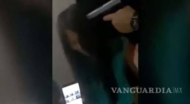 En el video se observa a una mujer hincada junto con dos niños y una niña, de repente un sujeto apunta con la pistola a cada uno en la cabeza y los obliga a revelar el nombre de la persona que pretendía pasarlos a Estados Unidos, mientras los golpea.
