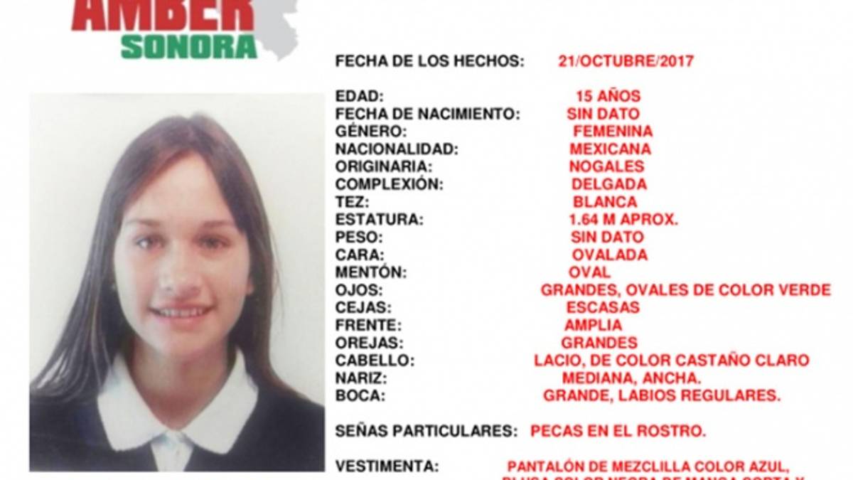 "El día sábado 21 de octubre del año 2017, en el transcurso de la noche, fue vista por última vez a la menor Ashey Dayanara Olivo Gómez, de quince años de edad; salió del domicilio ubicado en la colonia del Rosario, en la ciudad de Nogales, Sonora; no se cuenta con mayor información hasta el momento. Se teme por su seguridad e integridad, ya que pudiera ser víctima de algún delito”, dicta la ficha del programa Alerta Amber Sonora.