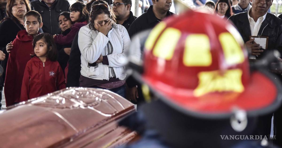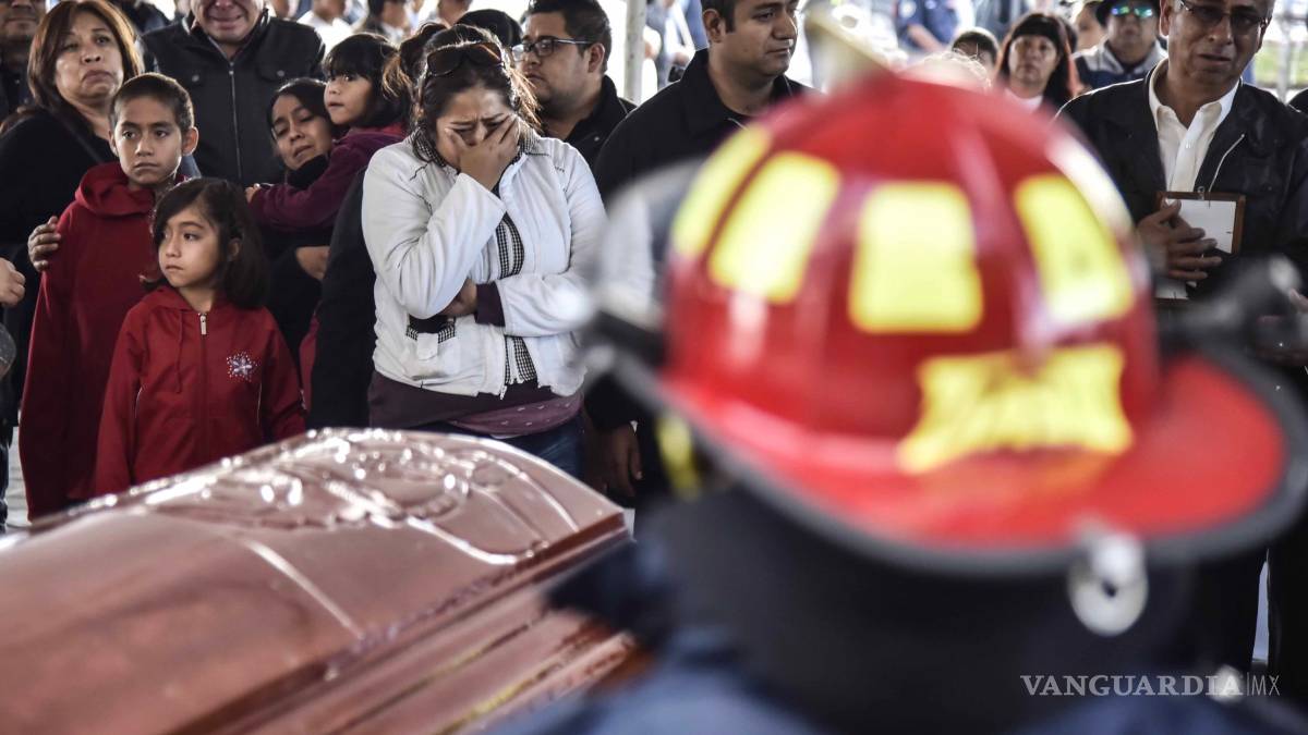 Acompañados por familiares, amigos y compañeros de trabajo, los cuerpos del bombero Nazario Guzmán, de 19 años; Mario Lino, subdirector de Protección Civil; y Guillermo Lira, paramédico y bombero fueron llevados a la presidencia municipal.