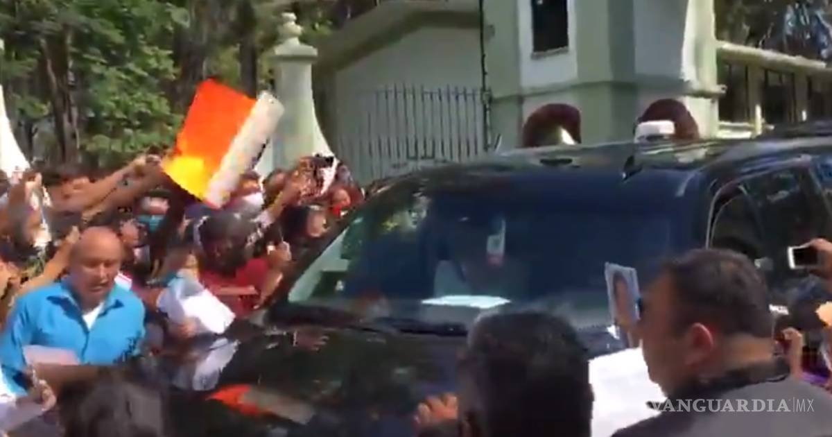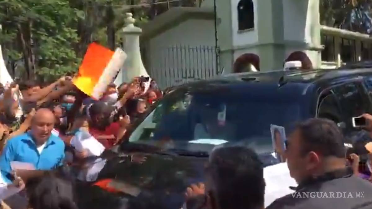 Videos captados por usuarios de redes sociales muestran el momento en el que AMLO sale de las instalaciones del 63 Batallón de Infantería en Xalapa, en Veracruz, y es abordado por un grupo de manifestantes.