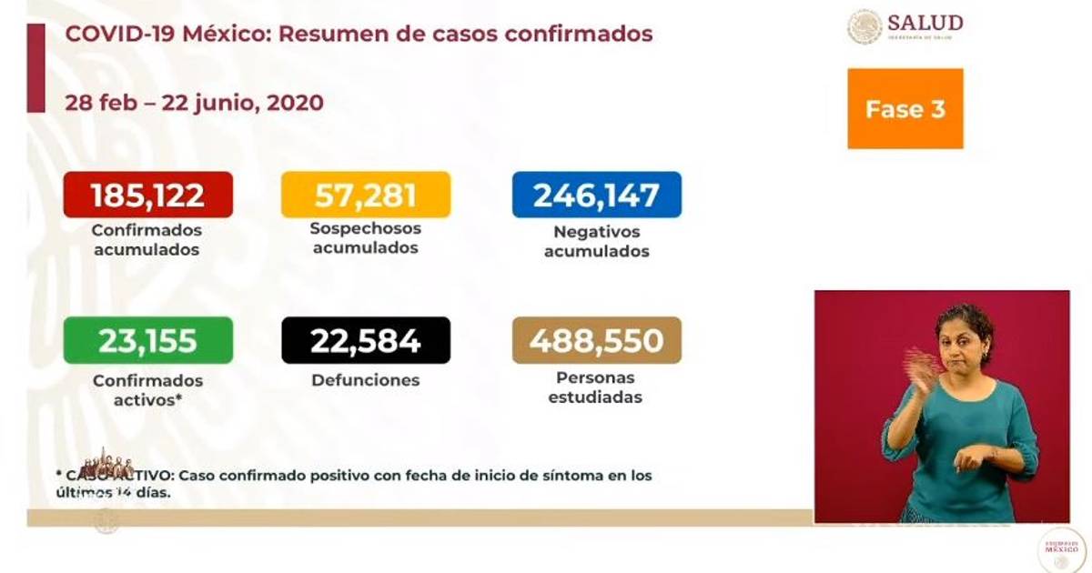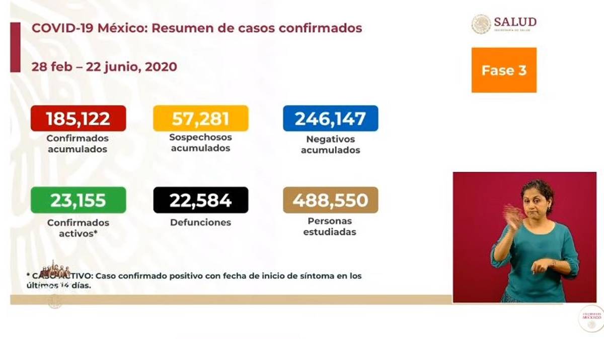 Registra México más de 185 mil casos de COVID-19; muertes ascienden a 22 mil 584