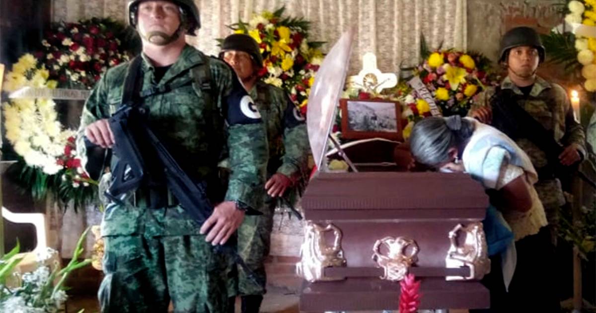 La bandera mexicana y la fotografía de un soldado sobre el féretro, rodeado de flores, indican que el duelo de esta casa es por un militar caído en servicio, el primero de los que integran el cuerpo de seguridad que creó el presidente Andrés Manuel López Obrador.