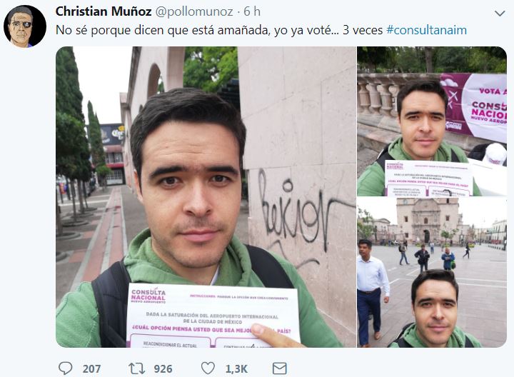 Relacionan con el PRI a joven que se hizo viral por votar 4 veces en consulta del NAIM