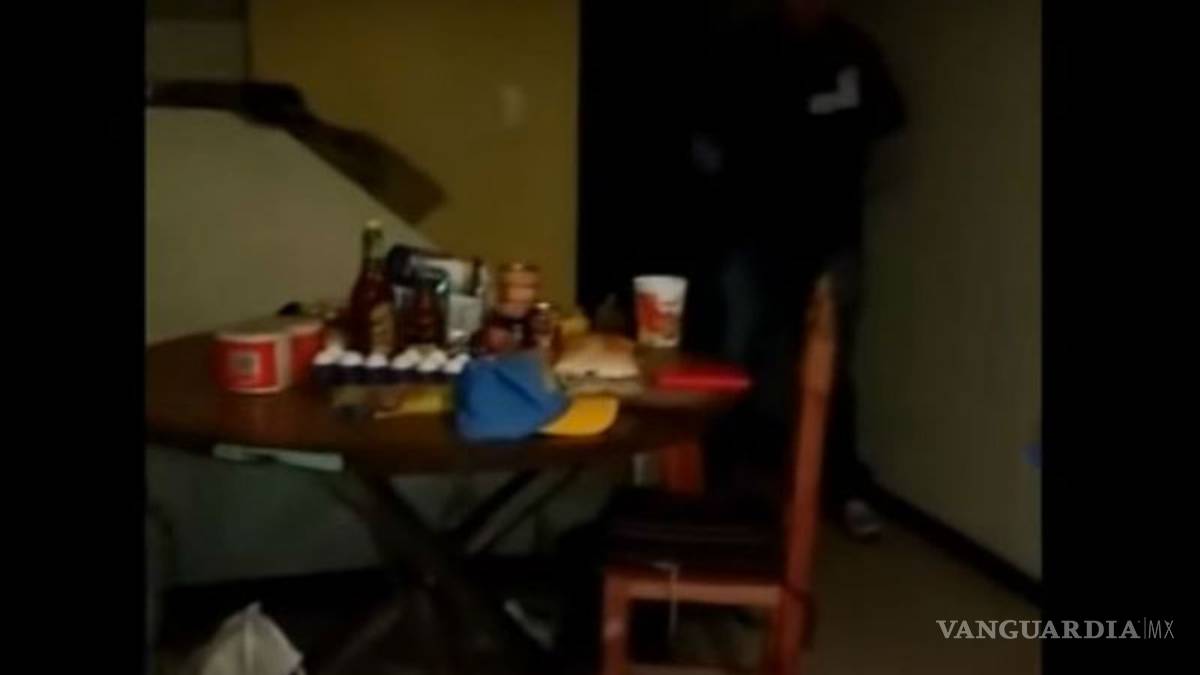 En la grabación difundida por agencia MANL se puede apreciar una mesa llena de comida y al ex policía bajando las escaleras de la casa, pero sin que se pueda apreciar la cara del presunto homicida.