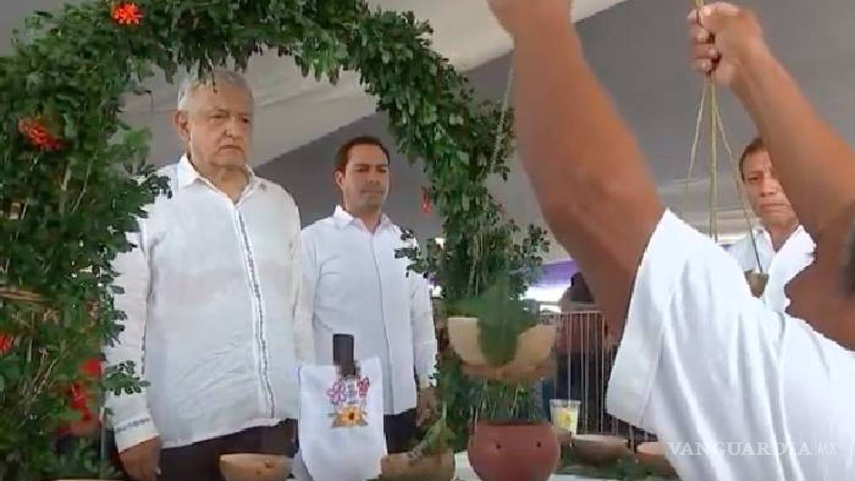 El presidente Andrés Manuel López Obrador recibió una “limpia” por parte de sacerdotes tradicionales mayas instantes antes de iniciar el diálogo con el pueblo originario en la localidad de Temozón, Yucatán.