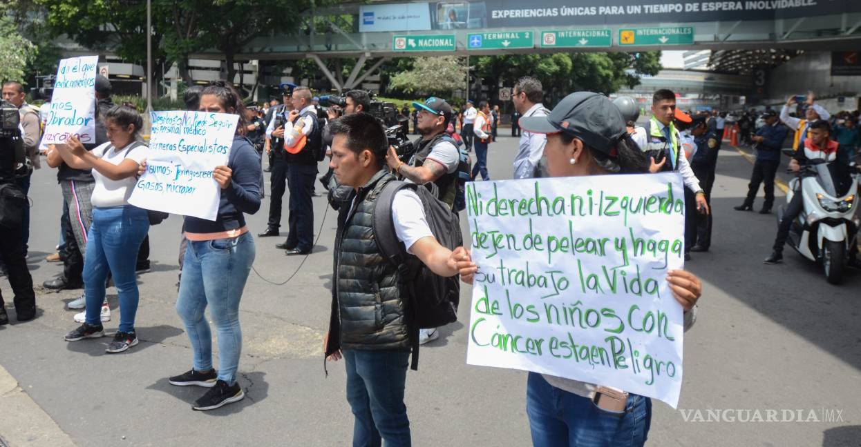 Padres de niños con cáncer bloquearon accesos de la Terminal 1 del Aeropuerto Internacional de la Ciudad de México; la Secretaría de Salud prometió que sí contarán con el medicamento
