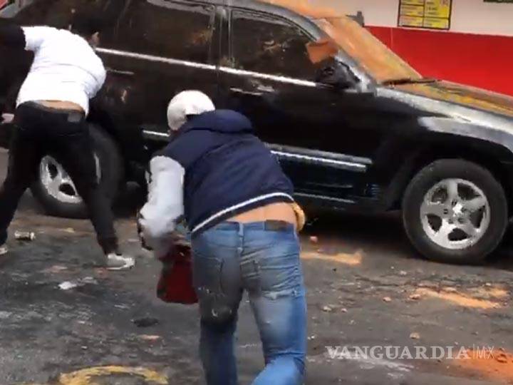 La situación se tornó tensa cuando minutos después una camioneta color negro tipo Jeep Cherokee, entró a un costado del inmueble que se utiliza como estacionamiento, sitio se encontraban los trabajadores y supuestamente intentó arrollarlos.