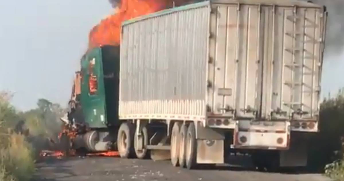 Reportan que un Grupo Armado bajó a un chófer de trailer en la carretera de San Juan de los Lagos a San Miguel el Alto. El vehículo arde en llamas.