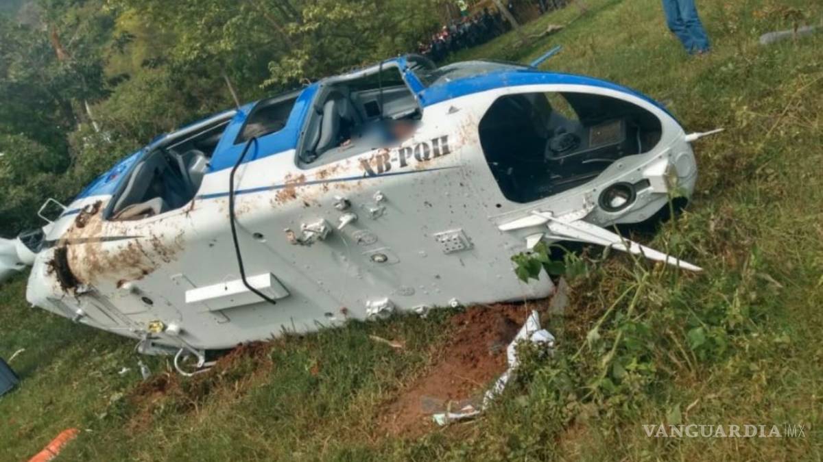 Elementos de seguirdad pública atendieron el llamado de emergencia y arribaron al lugar donde encontraron al helicóptero desplomado, además de seis camionetas 'pick up' con hombres armados