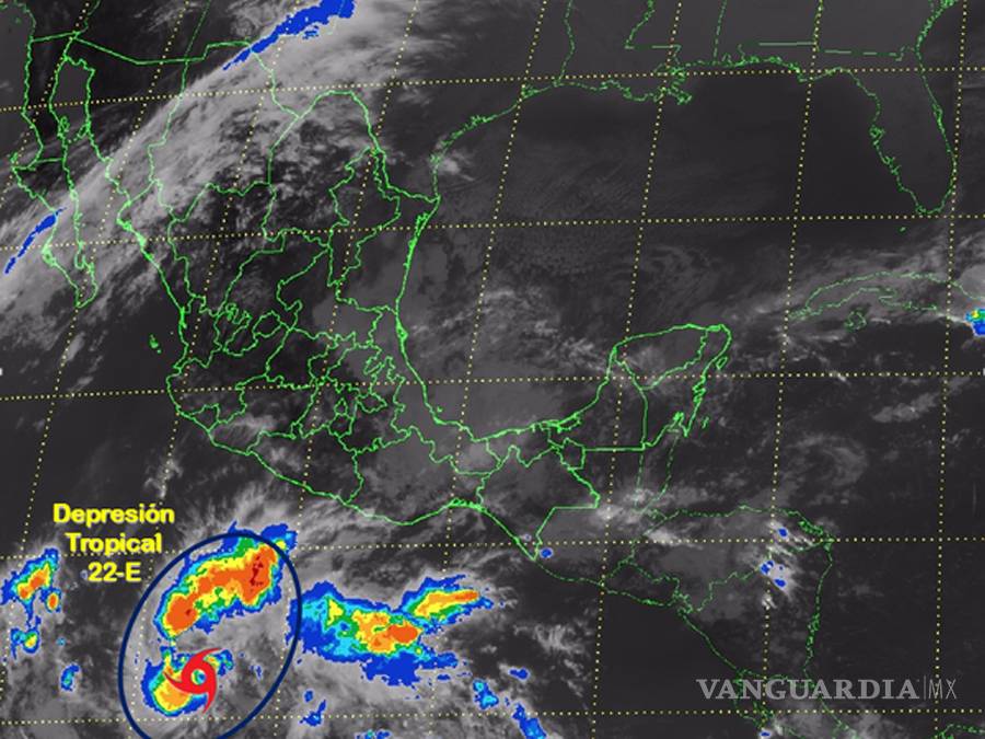 La depresión tropical 22-E se formó este lunes en el Océano Pacífico, la cual generá lluvias intensas y fuertes vientos en Oaxaca, Chiapas y Guerrero, informó el Servicio Meteorológico Nacional (SMN).