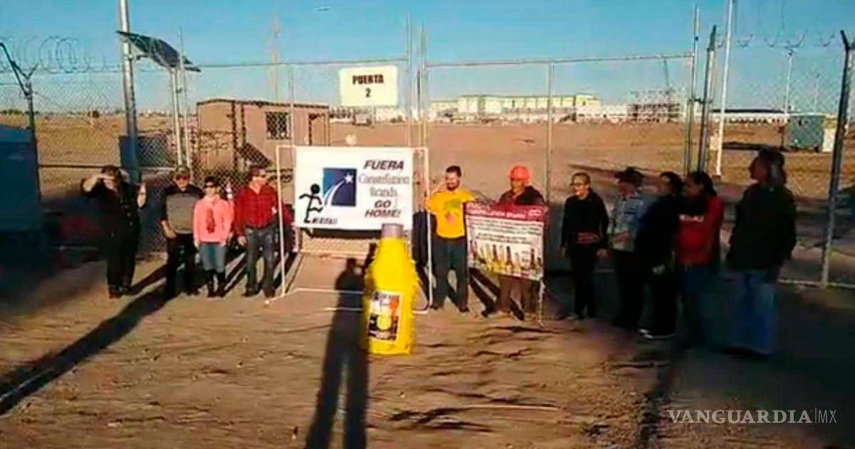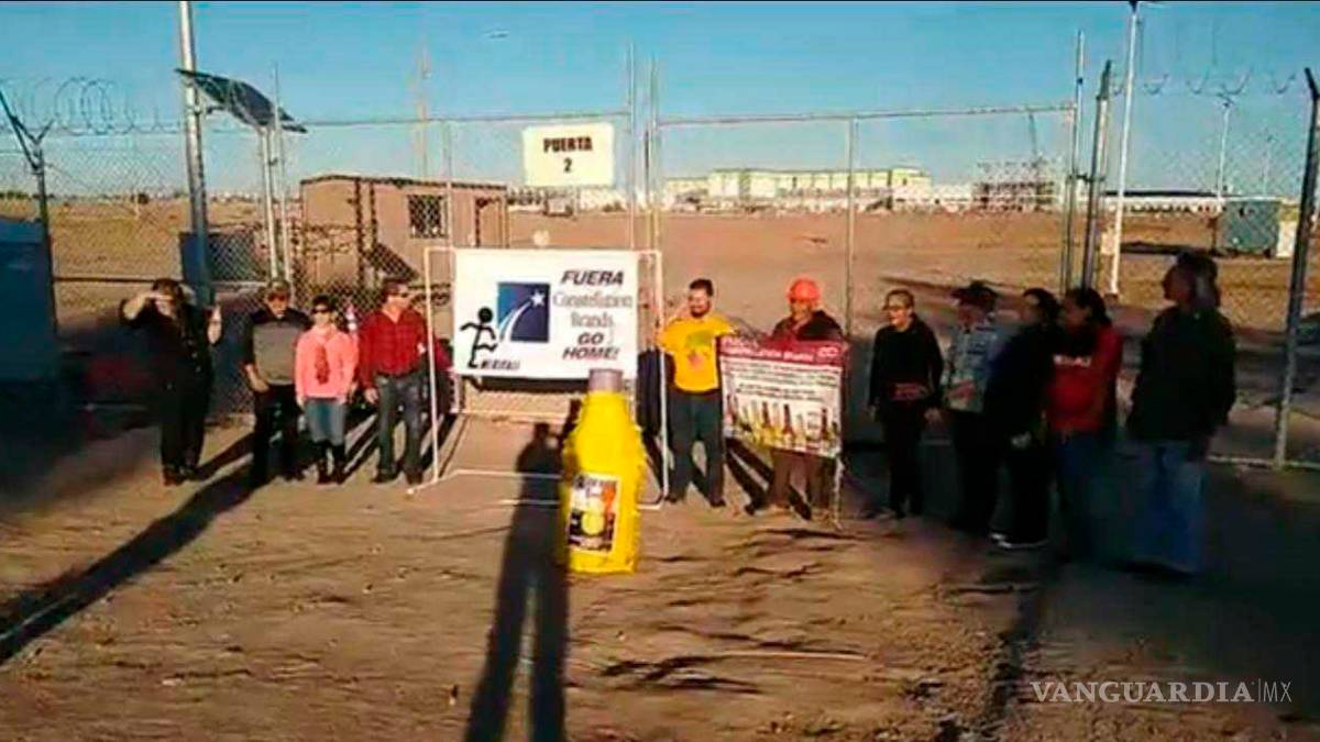 Un pequeño grupo compuesto por trece inconformes se manifestaron ayer frente a la planta de Constellation Brands que se construye actualmente en Mexicali, Baja California.