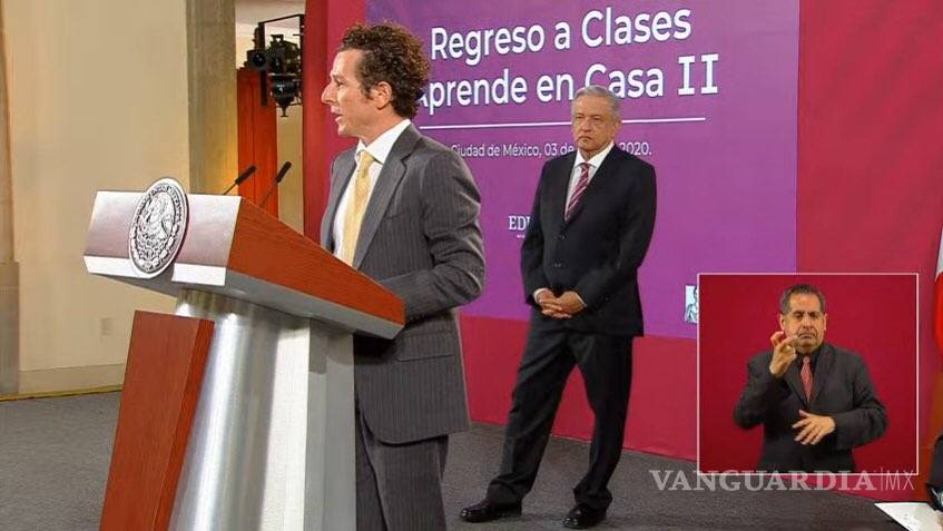 "El presidente López Obrador encabeza la firma de un acuerdo de concertación con cuatro televisoras nacionales: Televisa, TV Azteca, Imagen y Multimedios, para regresar a clases con un esquema robusto, oficial, válido, que dará servicio a 30 millones de estudiantes de 16 grados escolares", dijo Moctezuma.