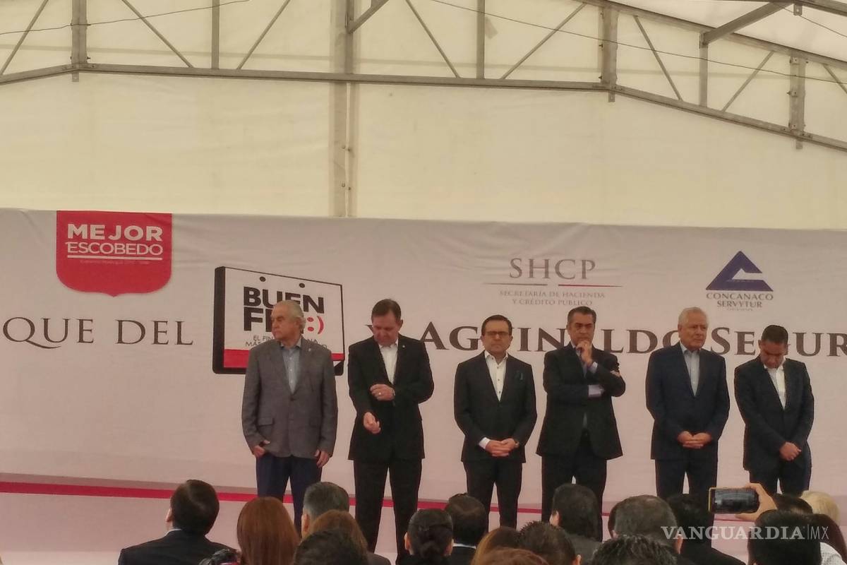 Previo a la ceremonia oficial, Guajardo realizó el corte de listón simbólico acompañado del gobernador de Nuevo León, Jaime Rodríguez Calderón y de la alcaldesa Clara Luz Flores Carrales.