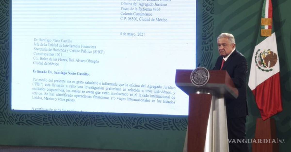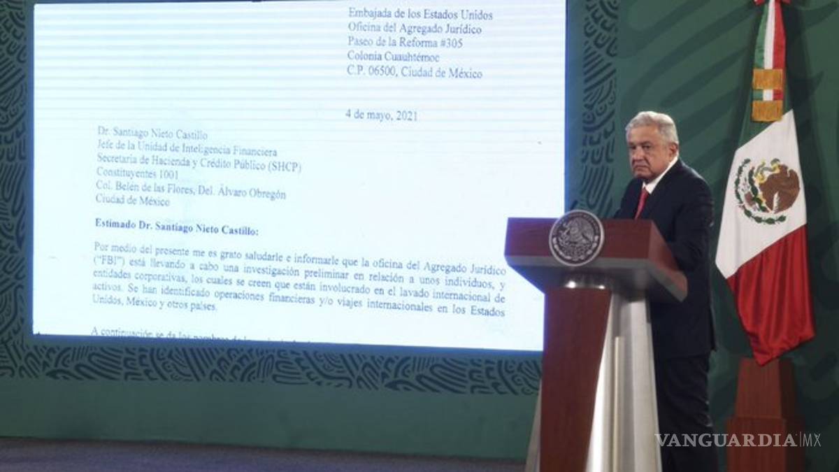 Durante la conferencia de hoy, AMLO presentó la misiva del FBI enviada a la UIF, en ella la agencia federal de Estados Unidos pide a México información sobre al menos 30 personas y sociedades anónimas