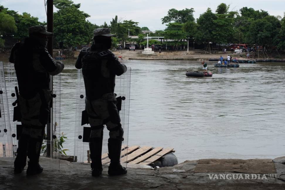Poco antes del mediodía, un contingente de unos 300 efectivos de la Guardia Nacional y del Ejército Mexicano portando escudos antimotines, toletes y chalecos protectores arribaron a la orilla del río Suchiate, que divide a México con Guatemala, y en grupos de ocho acompañados por agentes migratorios se instalaron en los pasos informales a lo largo de un kilómetro.
