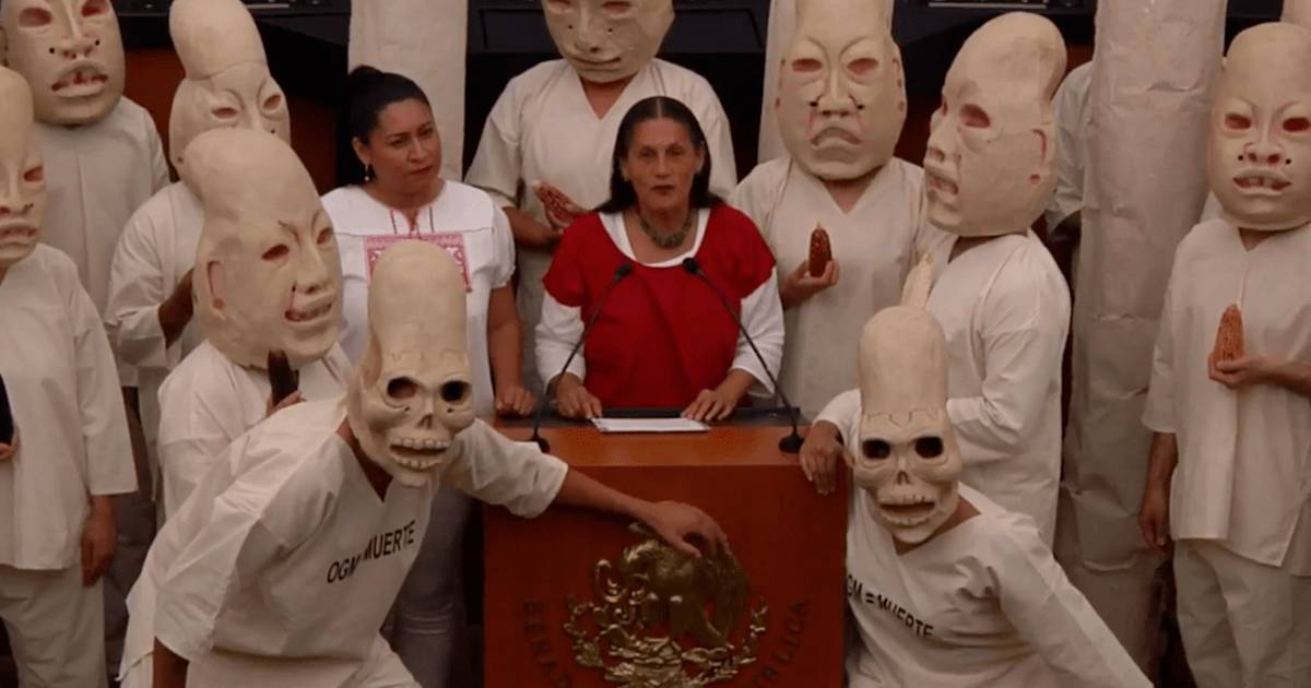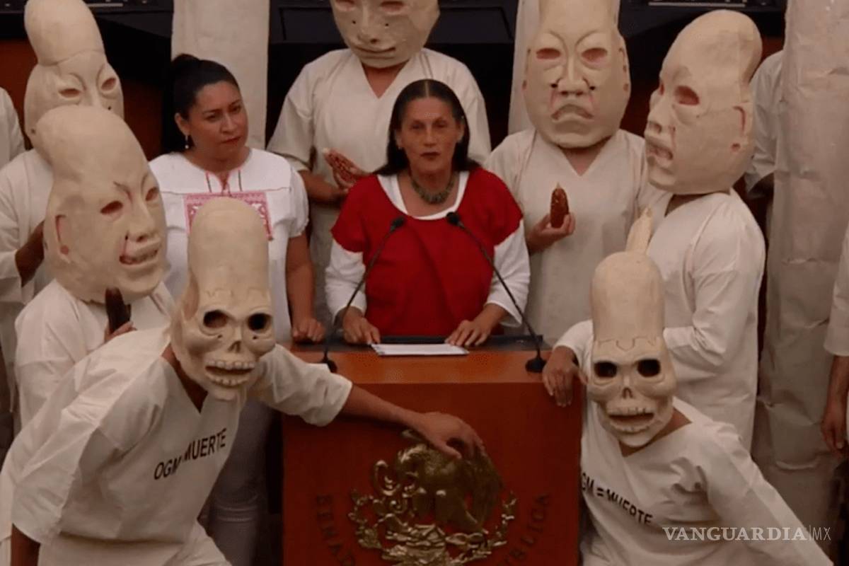 Senadora Jesusa Rodríguez llama a proteger el maíz con performance en tribuna