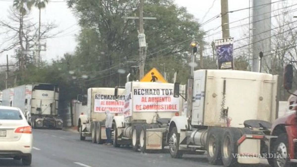 Monterrey, Nuevo León. Transportistas inconformes por el alza en el precio de la gasolina y el diésel protagonizaron, la mañana de éste jueves, una protesta sobre la carretera Nacional.
