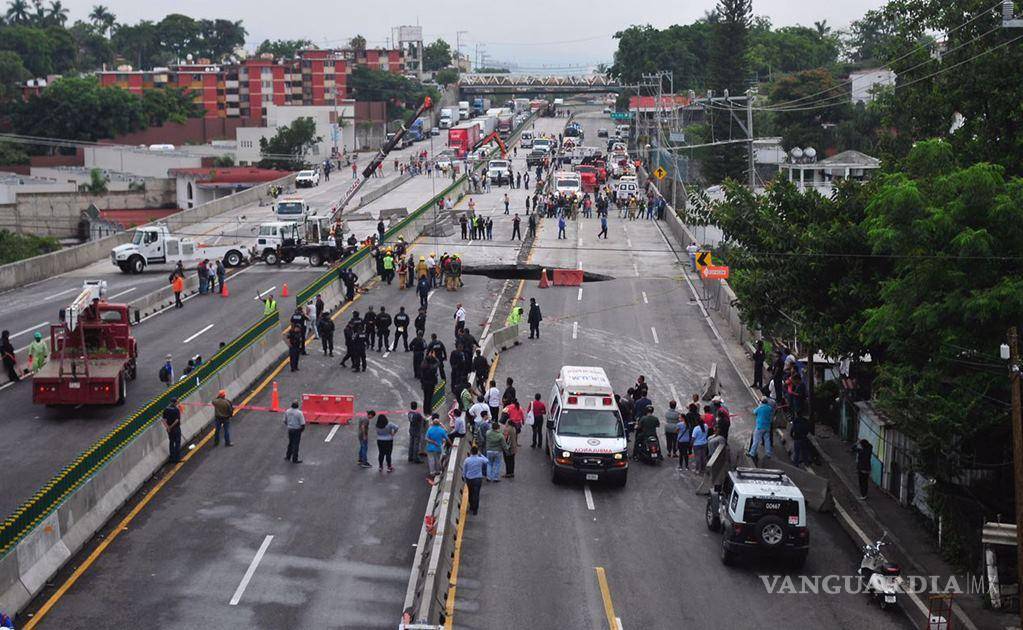 Socavón se 'traga' coche en Paso Express de Cuernavaca, tiene pocos meses de inaugurado