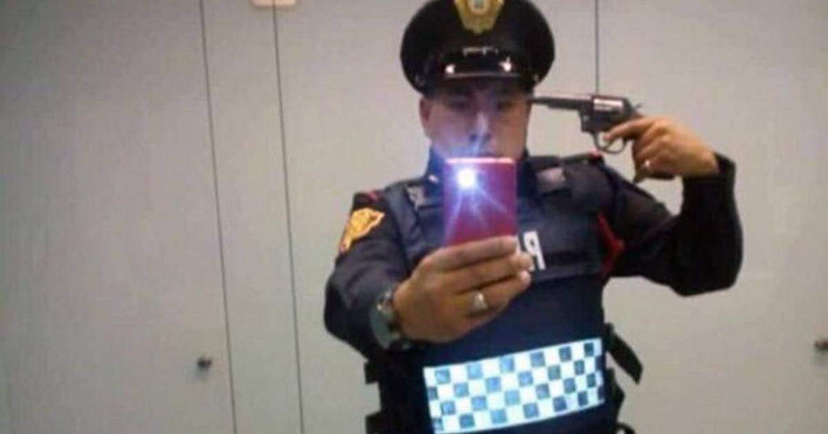 El policía bancario de la Secretaría de Seguridad Pública capitalina (SSP), quien el día de ayer se dio a conocer en redes sociales por publicar una fotografía de él frente al espejo apuntándose en la cabeza con un arma de fuego, fue suspendido de sus actividades.