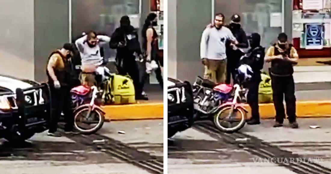 En días pasados, las imágenes del suceso comenzaron a circular en redes sociales, despertando la indignación de los usuarios pues claramente se puede ver cómo uno de los oficiales saca de su pantalón un envoltorio blanco para incriminar al repartidor.