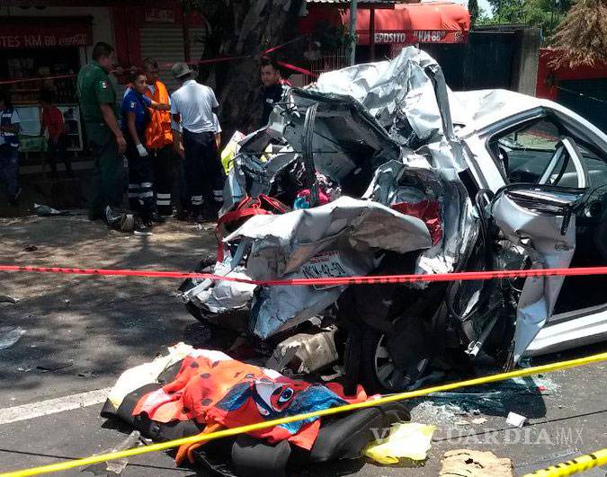 El percance se registró alrededor de las 13:30 horas en el kilómetro 88 de esta vía, a la altura del municipio de Atlatlahucan, donde seis autos compactos fueron literalmente prensados por el pesado camión.