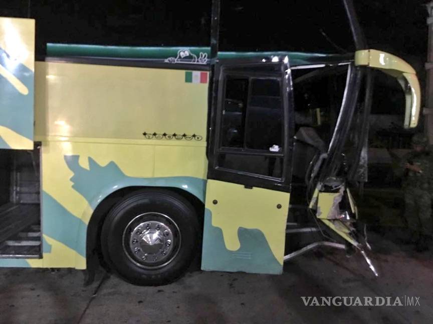 El autobus presenta cuatro impactos en el parabrisas del lado del copiloto y un golpe en la parte frontal del lado derecho de la unidad