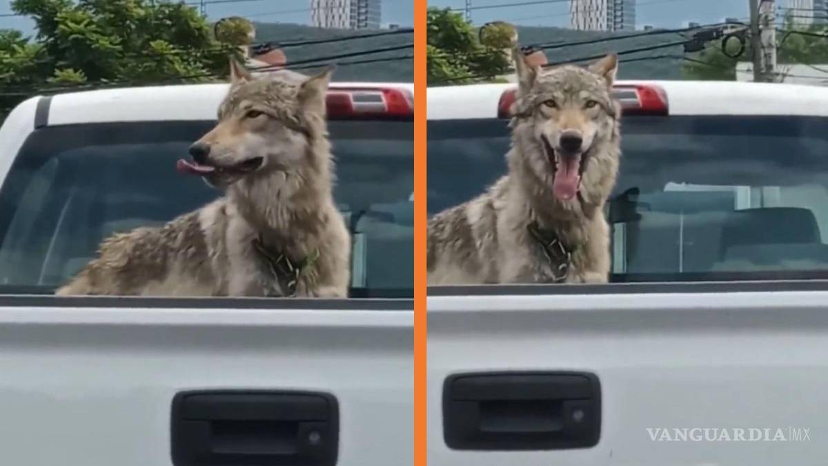“Esta mascota que traen atrás en la camioneta no es un perro, no es un coyote, es un lobo. Miren nada más, en pleno Monterrey, a mediodía, un lobo en la camioneta, lo traen como si fuera mascota”, señala el autor del video.