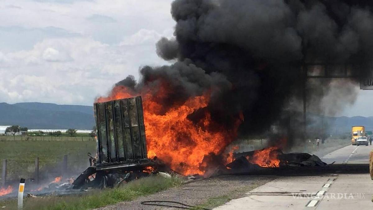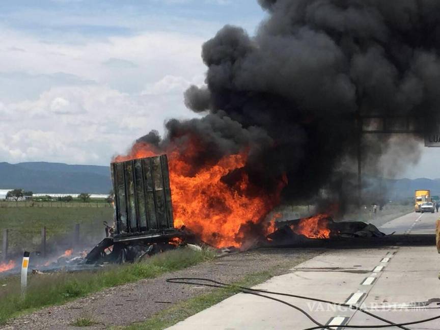 El autobús de pasajeros quedo recostado sobre su lado derecho a la orilla de la carretera con dirección a Zacatecas, mientras que el camión se incendió debido al fuerte impacto, por lo que se tuvo que requerir el auxilio de Protección Civil y Bomberos del Estado y municipales, además de que acudieron diversas corporaciones de rescate y de seguridad tanto de Zacatecas como de Aguascalientes.