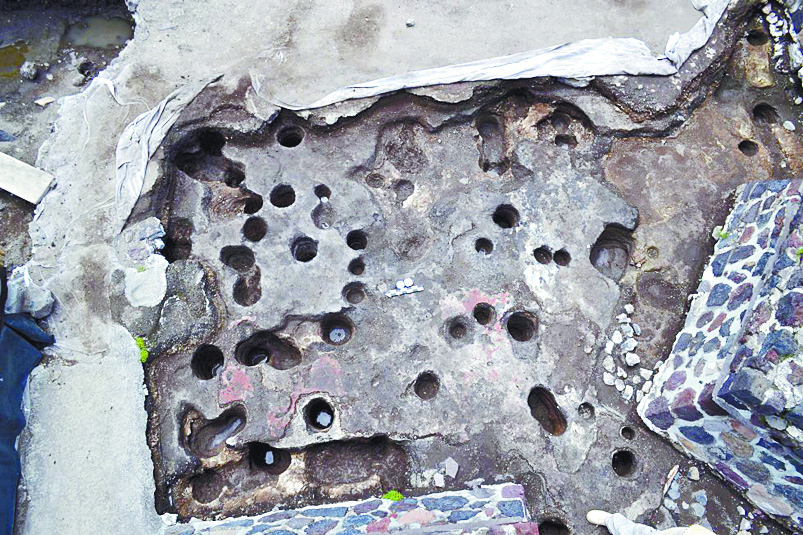 “El tepetate que conforma la superficie de la Plaza de la Luna fue modificado. Se identificaron más de 400 oquedades usadas a lo largo de cinco siglos, pequeños hoyos de 20-25 centímetros de diámetro y unos 30 centímetros de profundidad que se hallan en toda la extensión de la plaza. En muchos de ellos había piedras de río, traídas de otro lugar”, añadió Ortega.