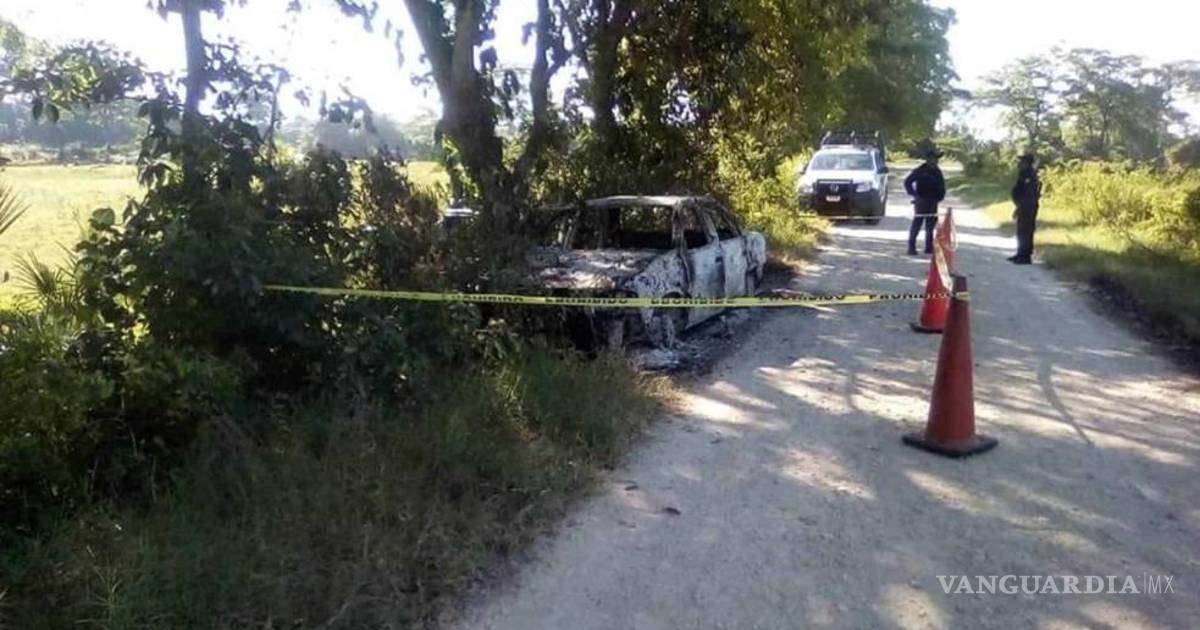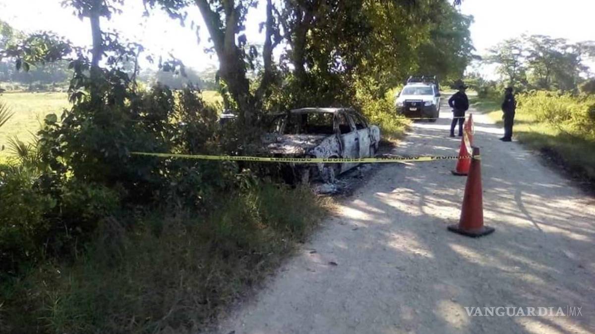 Casi reducidos a cenizas, dentro de un vehículo incinerado, quedaron los cuerpos de una mujer y un hombre en el municipio de Macuspana, Tabasco