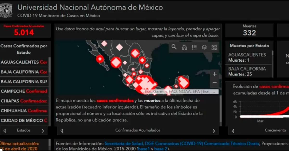 UNAM crea mapa con la evolución del coronavirus en México