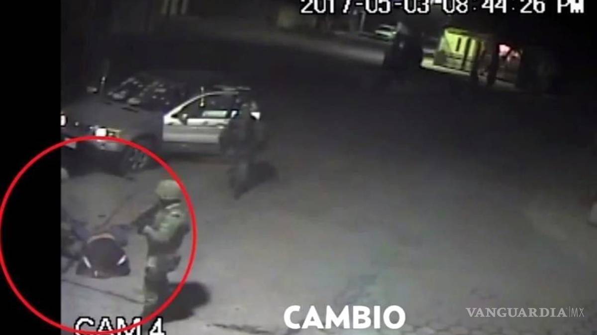 En el video grabado desde una cámara de seguridad de un domicilio particular se aprecia que los militares atacan a tiros un vehículo particular en el que iban al menos tres civiles desarmados.