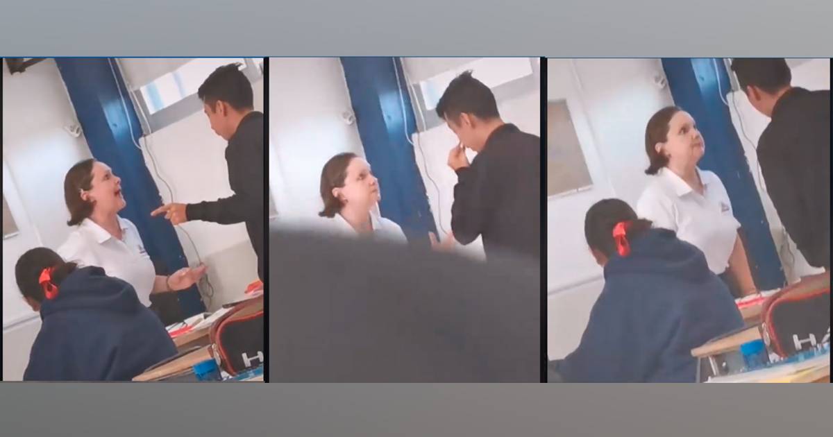 En las imágenes se aprecia que la docente le dice al joven que no la amenace, "no me amenaces, no tienes derecho a amenazarme", mientras que los demás alumnos se ríen y graban el hecho.