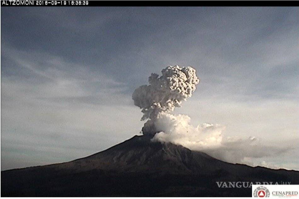 El volcán Popocatépetl registró una explosión a las 18:37 horas que generó una columna eruptiva de tres mil 200 metros de altura sobre el nivel del cráter
