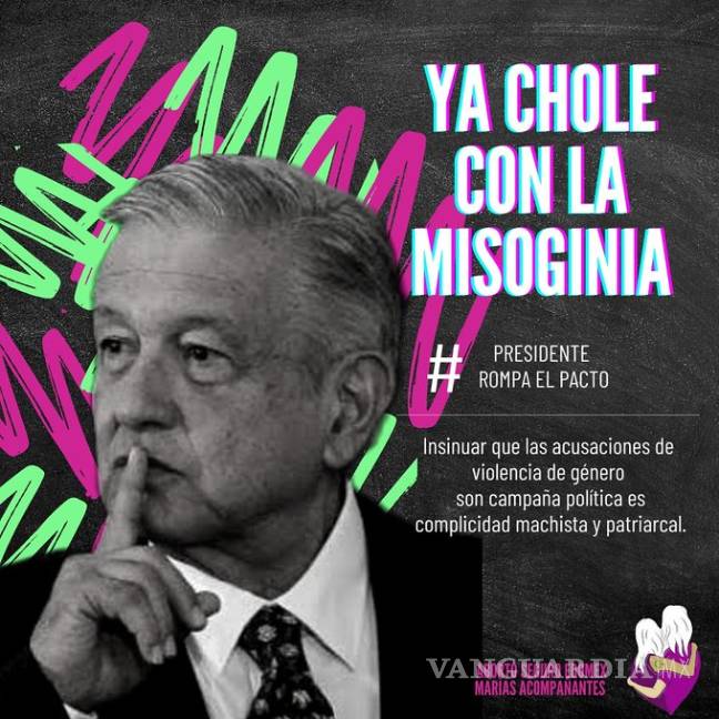 “Ya chole” con la misoginia, con nuestras hermanas que desaparecen, con invisibilizar nuestro dolor, con callar nuestra voz, con la burla hacia las mujeres, con revictimizarnos. PRESIDENTE, ROMPA SU PACTO PATRIARCAL. #YaChole #NingunAgresorEnElPoder pic.twitter.com/kNfWgxwP6o